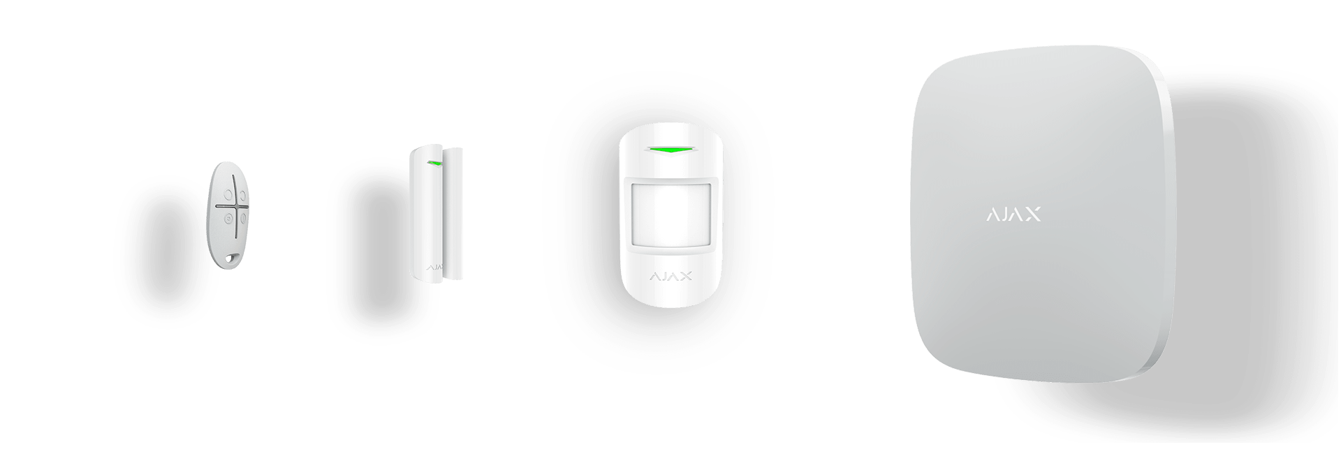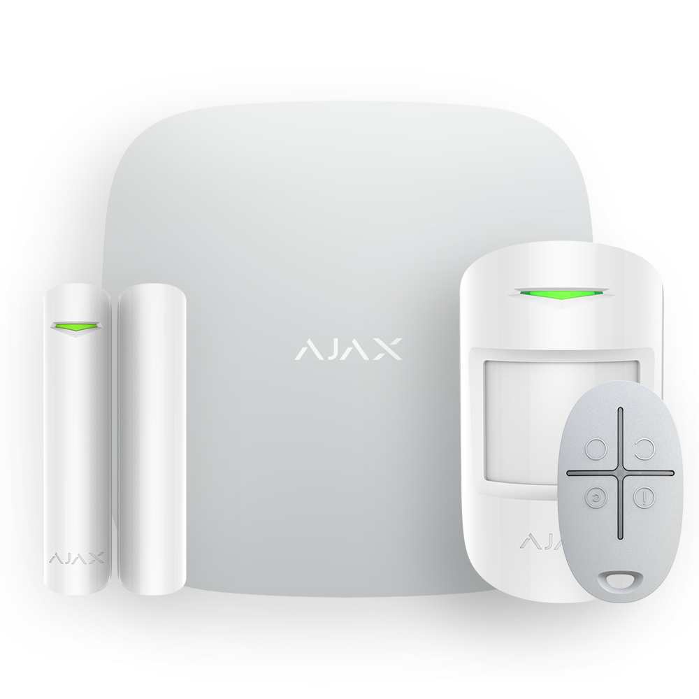Готовый набор беспроводной системы безопасности Ajax с интеллектуальной централью второго поколения Ajax Hub Plus.