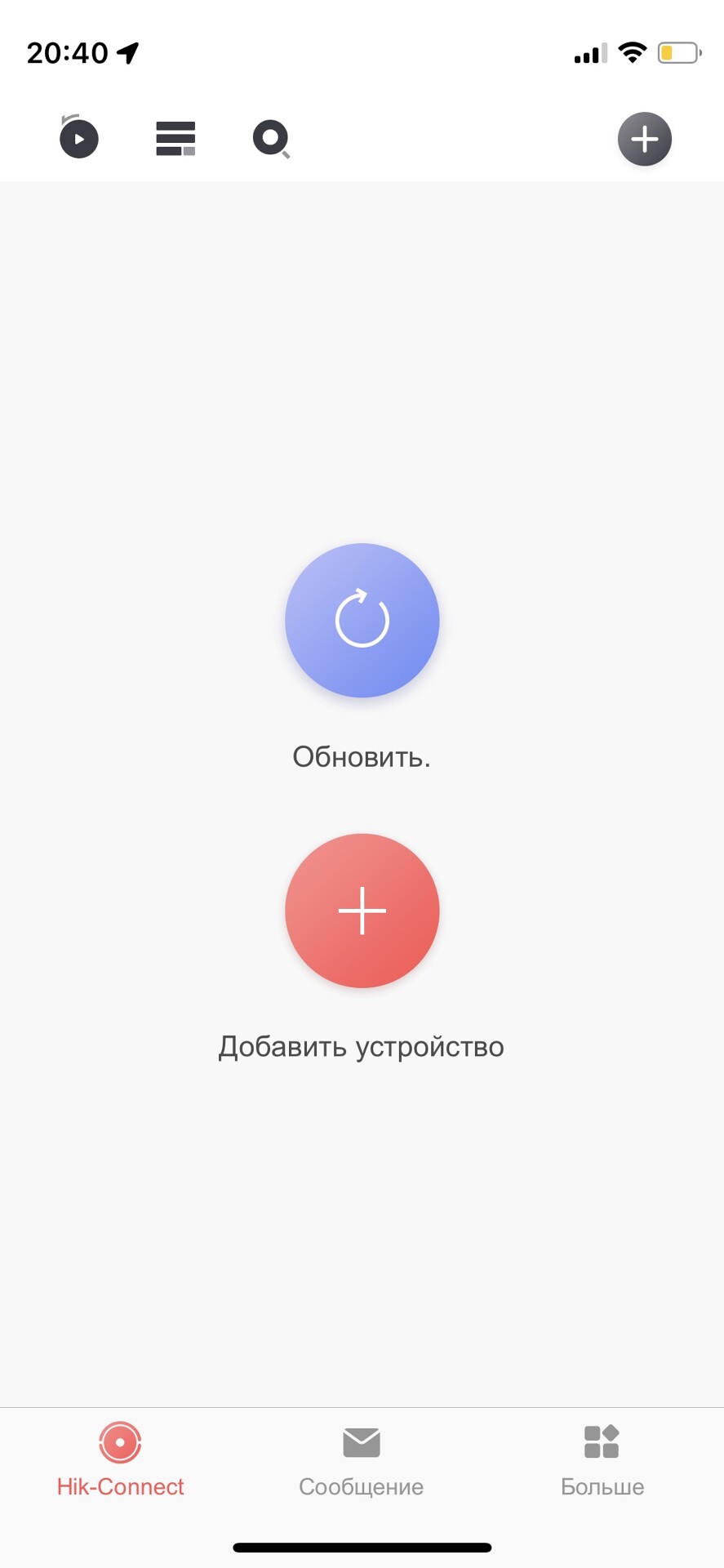 Регистрация в приложении завершена. Теперь вы уведите основной экран с кнопками Обновить и Добавить устройство